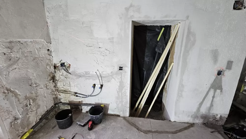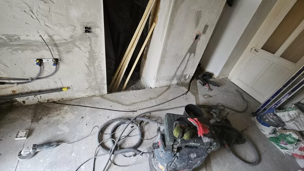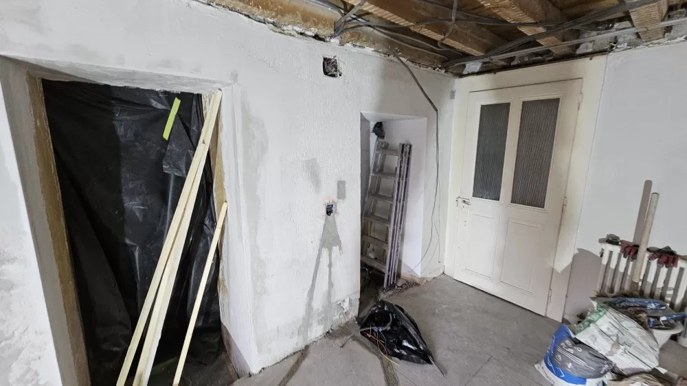 Rénovation dans une ancienne bâtisse ayant des murs d'un mètre de large. La prudence s'impose quand on fait des carottages!